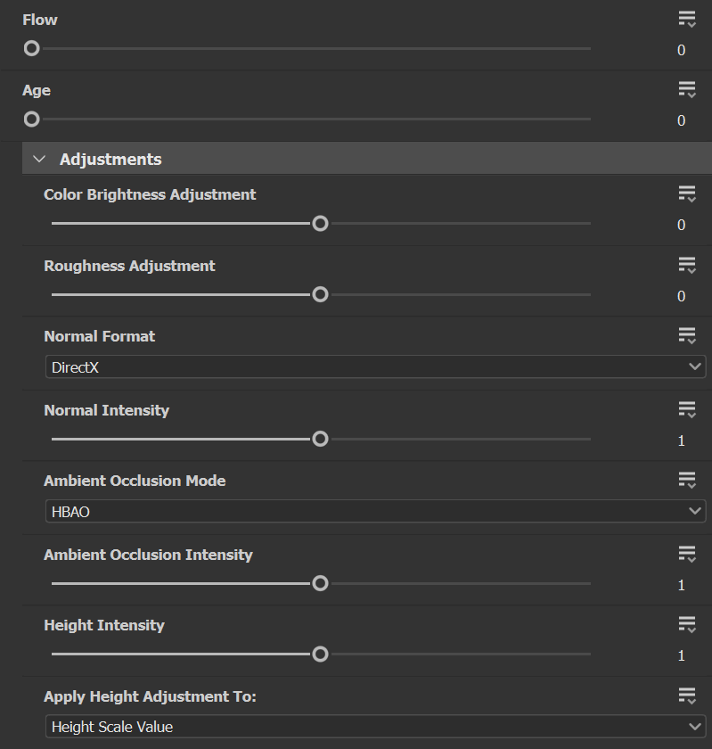 Includes parameters for making post-process adjustments to the material and maps are provided for both metallic/roughness and specular/glossiness workflows.