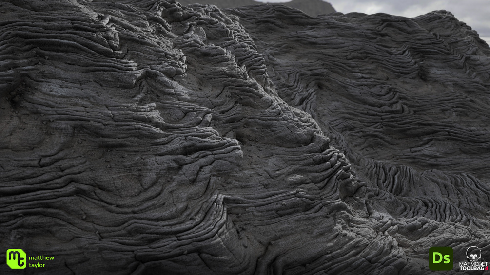 - 4K pre-exported PBR texture set in solidified volcanic rock state (9 maps).
