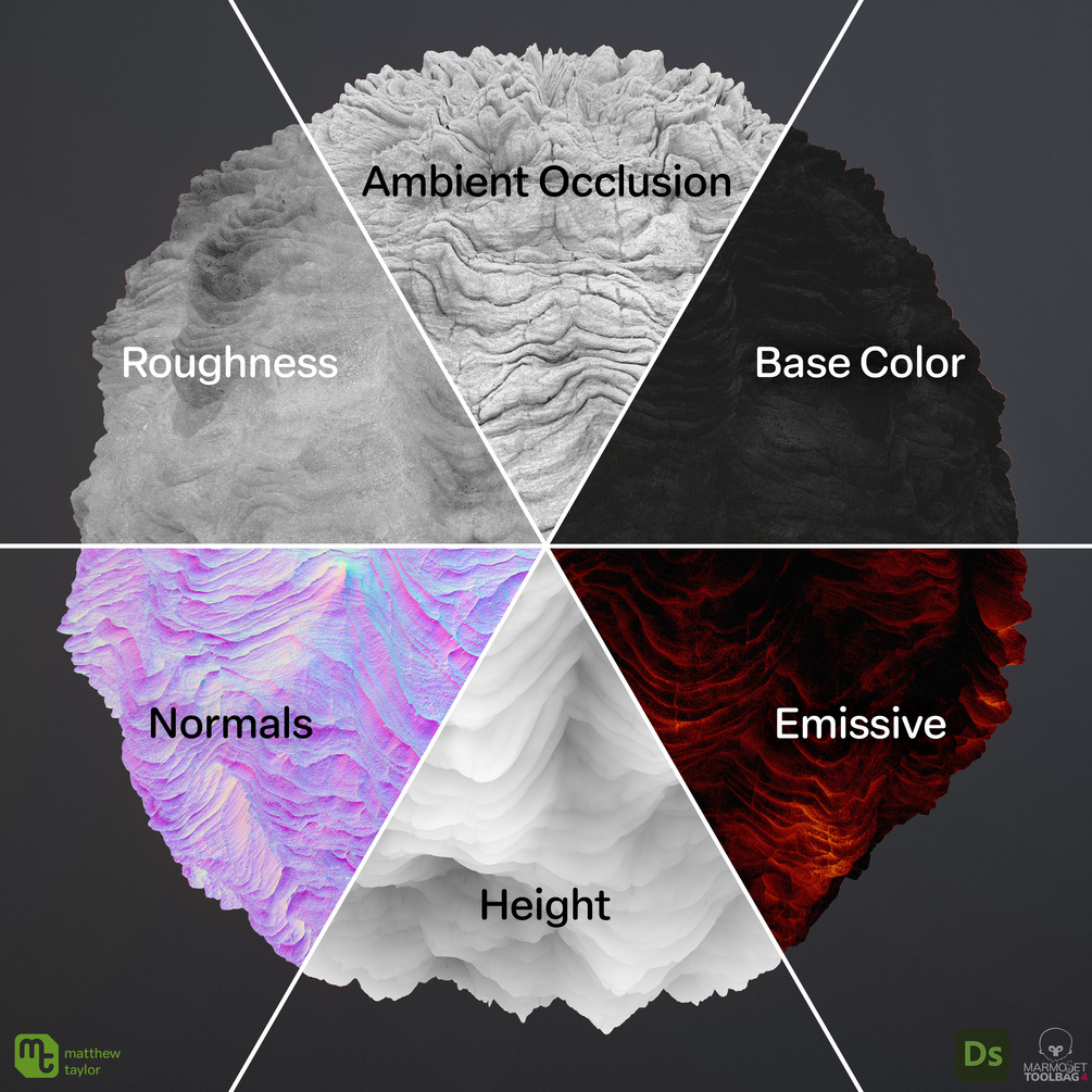 - 4K pre-exported PBR texture set in molten lava state (9 maps).